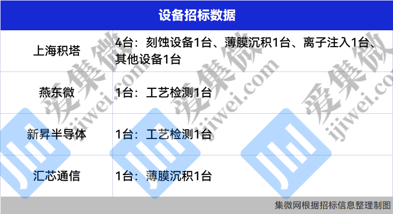 5.【一周招/中标】嘉芯迦能新增中标设备3台★■■,拓荆科技新增中标设备1台,上海积塔新增设备招标4台